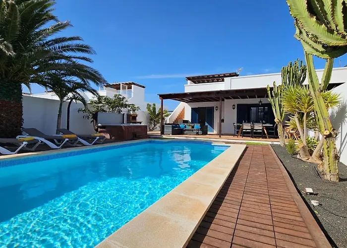 The kitchen amenities at the accommodation feature an electric kettle, a refrigerator, and a toaster, provided in an outdoor dining area. Lanzarote airport is situated 30 km from the Playa Blanca accommodation. Villa Angelita boasts a private swimming pool, a Jacuzzi, ensuring a relaxing stay.